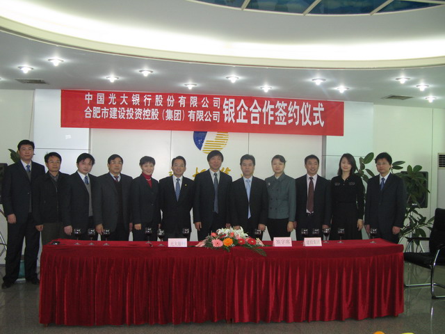 继今年4月份合肥市建设投资控股(集团)有限公司(以下简称合肥yl6809永利)与中国工商银行签署200亿元融资协议后,,,,,再传喜讯,,,,,12月1日上午,,,,,合肥yl6809永利与中国光大银行签署商业相助协议,,,,,中国光大银行将在2008年至2011年时代,,,,,向合肥yl6809永利提供30亿元的融资支持,,,,,主要用于合肥市都会基础设施等重点项目的建设。。。